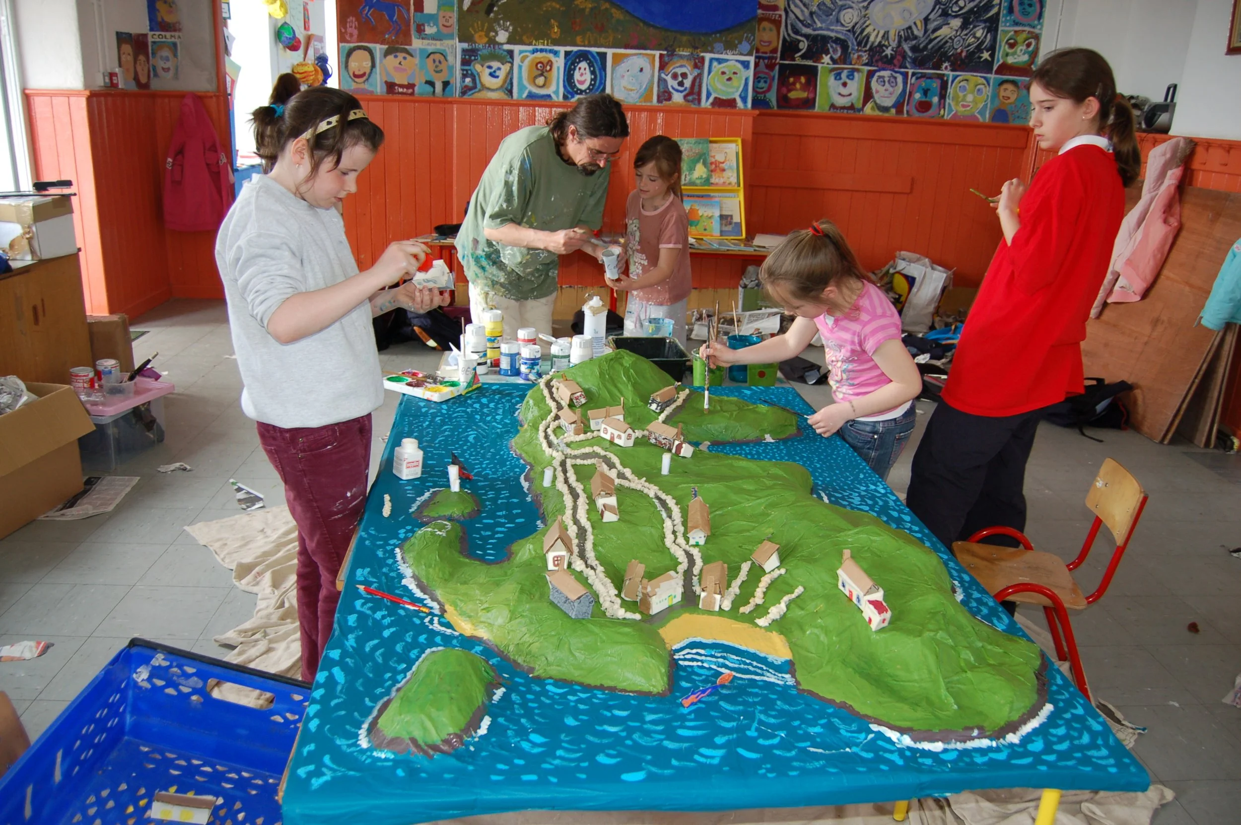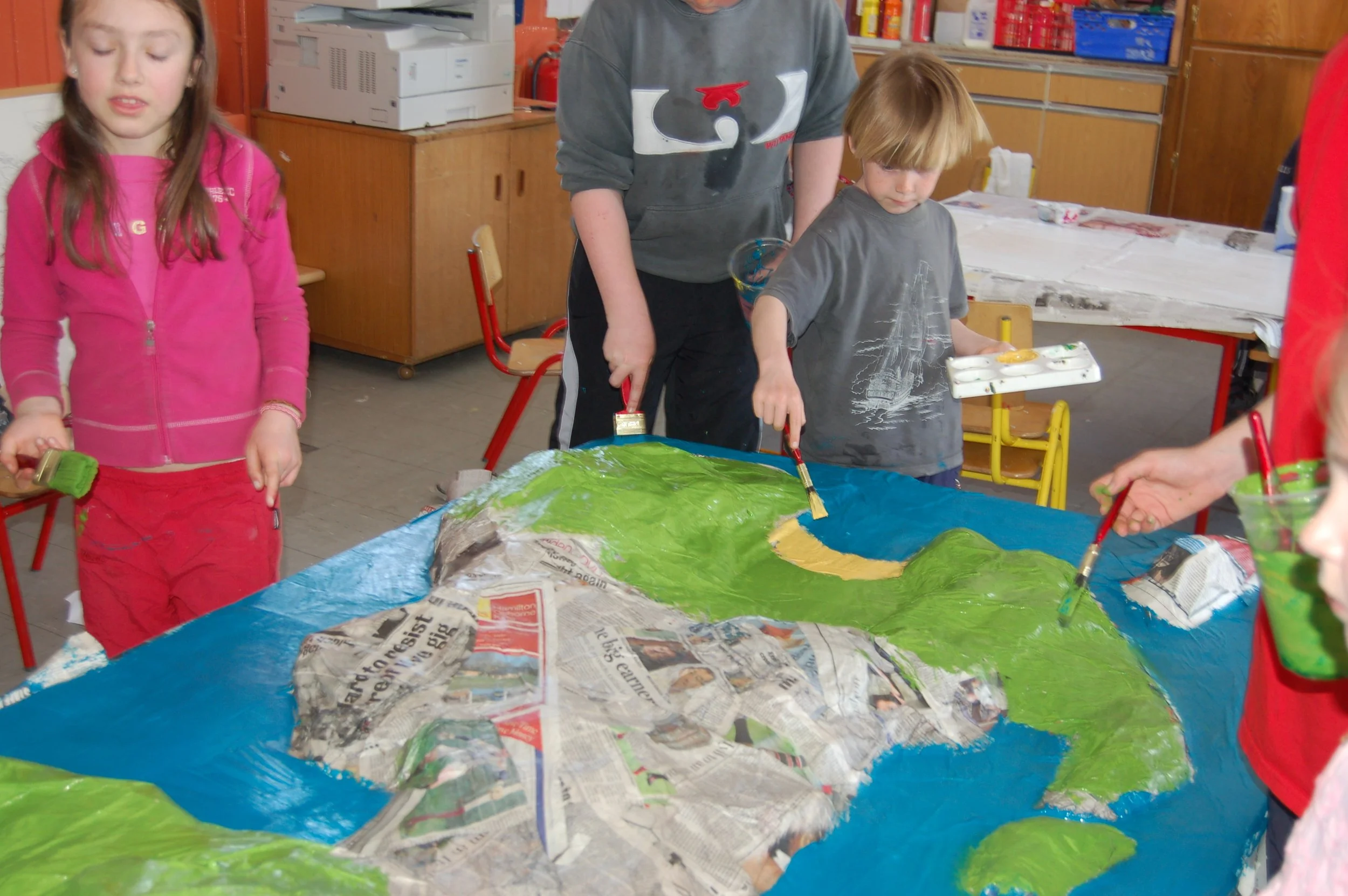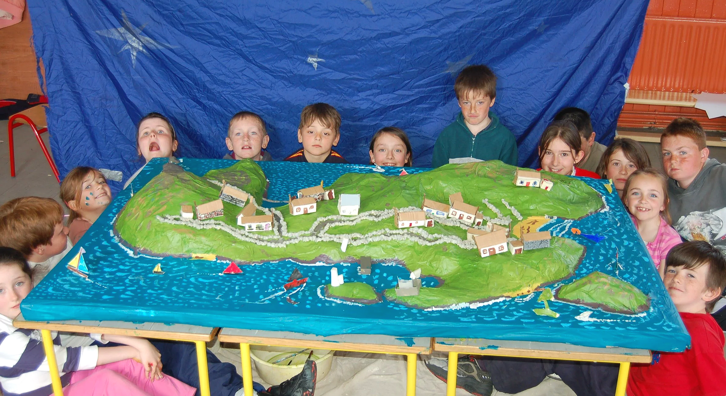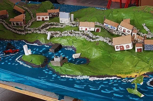 A 3D model of the island. Completed in two days by every child in the school and exhibited during the island’s arts festival.