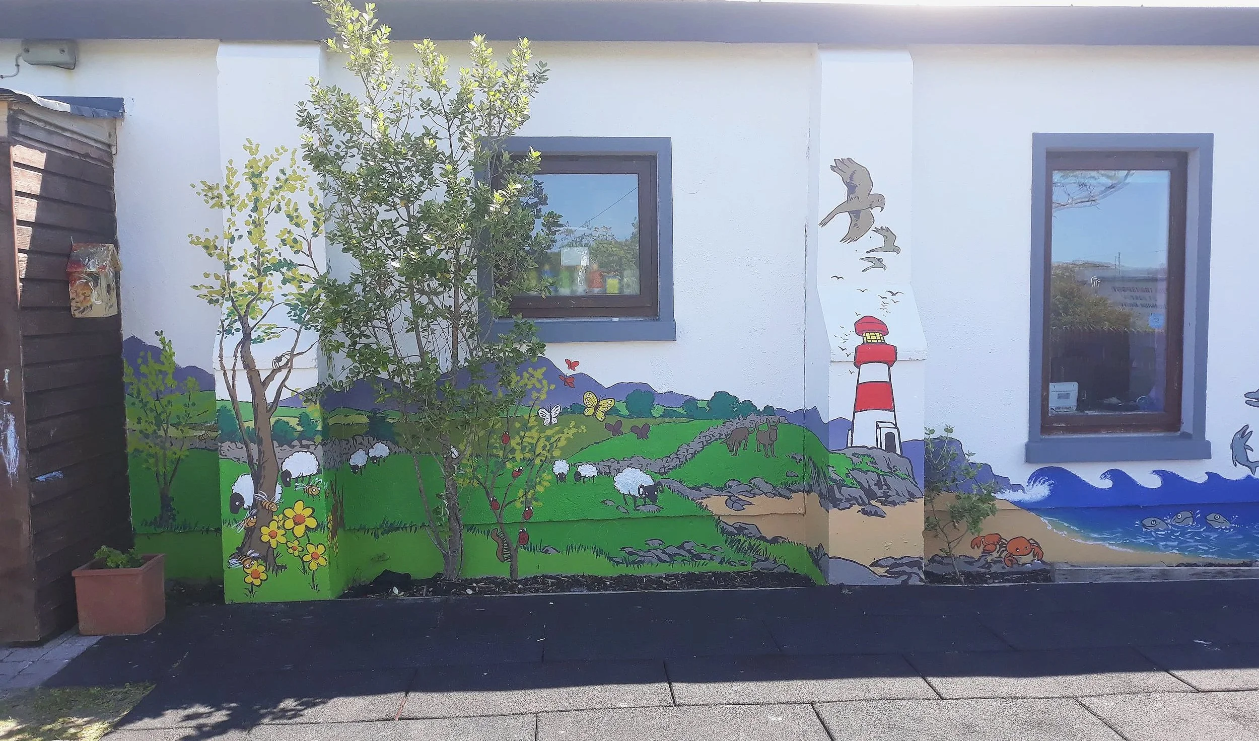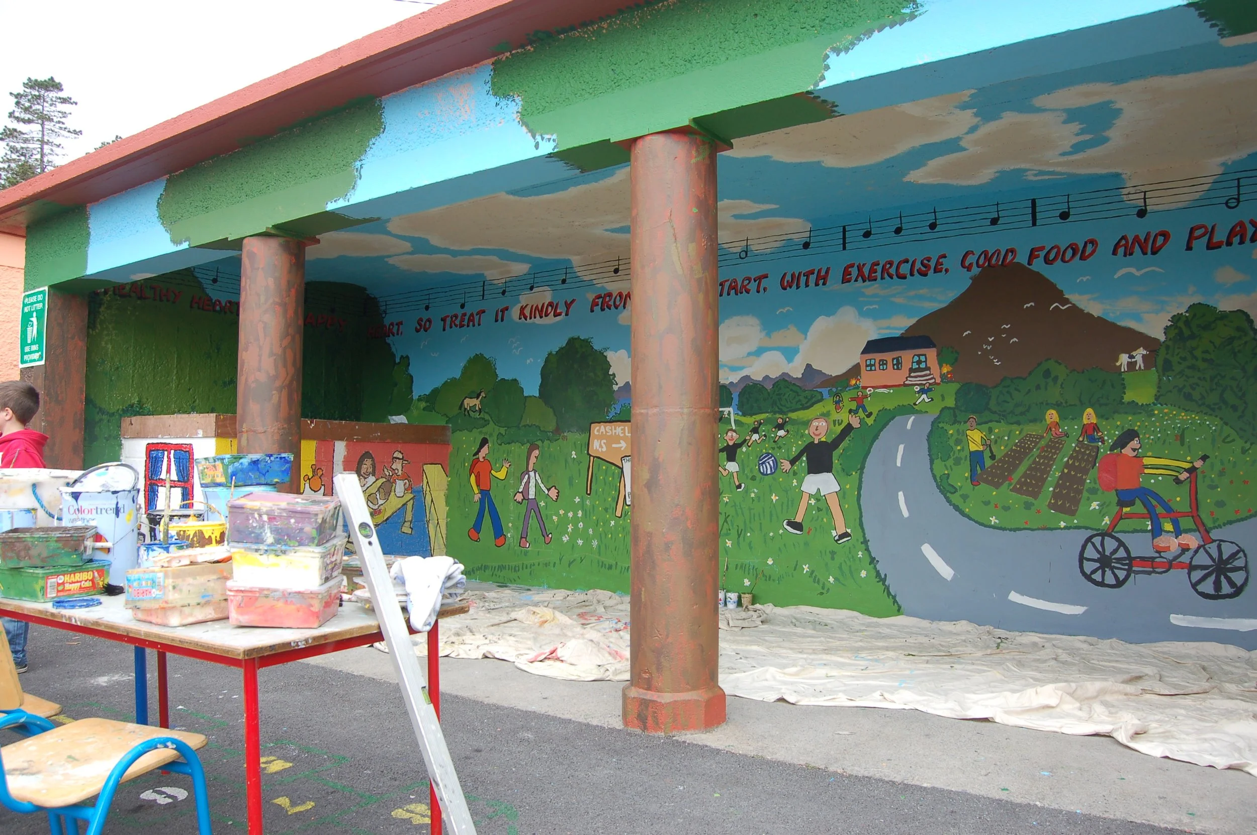 Natural Health mural. Playground shelter. Every child contributed to the finished painting.